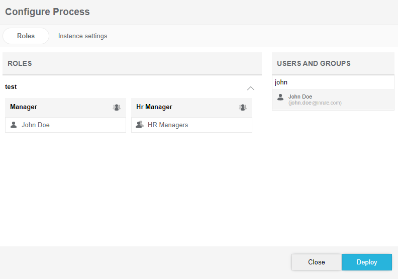 In order to make these changes function correctly, the administrator must complete a final step to ensure that the new user's permissions will also receive permissions for instances created in the future. Depending on how the roles were configured when the process was deployed, there are two ways to do this which are explained below: