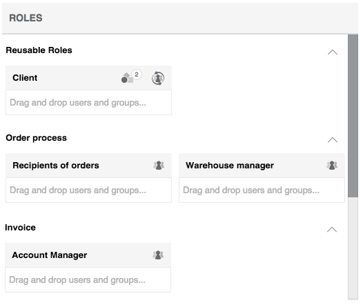 It is also possible to use the Role Mapper to assign roles. This is appropriate if you want to involve the same users and groups in a role in your call activity as in your master process. Reusable roles appear when you have used a Role Mapper in your master process.