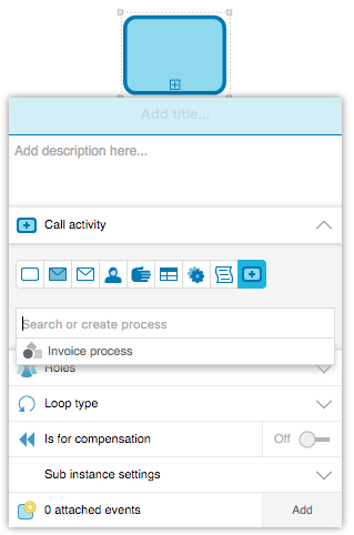 If a call activity is used in your process application, instances sent to the secondary process will be called sub instances. By using the sub instance settings, it is possible to configure how the sub instances are named. It is also possible to set if the sub instance should be isolated from the master instance or not.