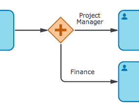 Gateway–parallel: A parallel gateway automatically merges or forks paths.