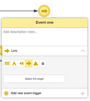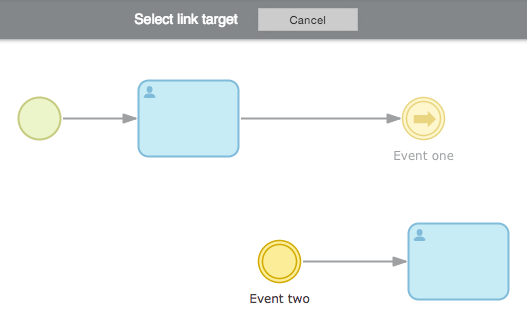 Click on Select link target and all intermediate events accessible for connecting are highlighted. Select your catching event and confirm the selection.