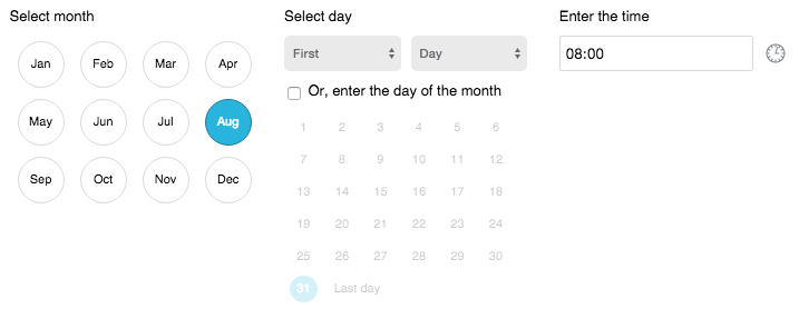 You can choose the interval types Daily, Weekly, Monthly, and Yearly. See more details below.