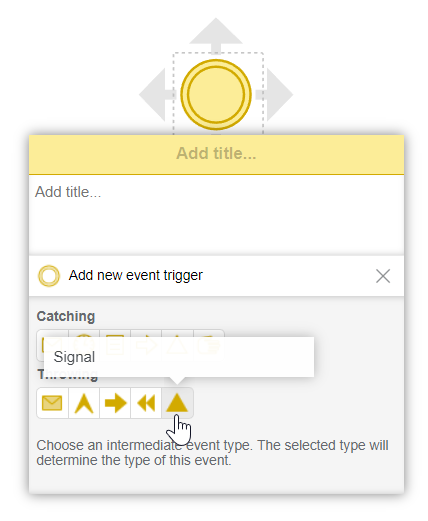 Signal events can be handy in many process scenarios to steer the process flow. In the BPMN standard, Start, End, and Intermediate Events can be of the type Signal.