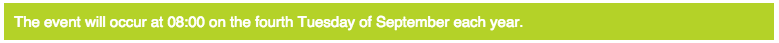 In the drop-downs, you can choose first, second, third, fourth, fifth and last day, weekend day, week day or specific week day.