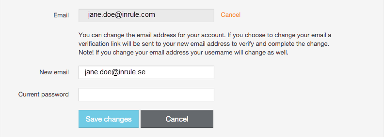 Click on Change email and fill in a new email address. Then enter your password and click on Save changes.