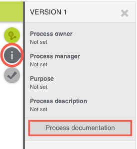 When the process is in the deployed state, you will see the option for Process documentation under the Process Information tab. This is not available for draft versions of the process, only deployed versions.