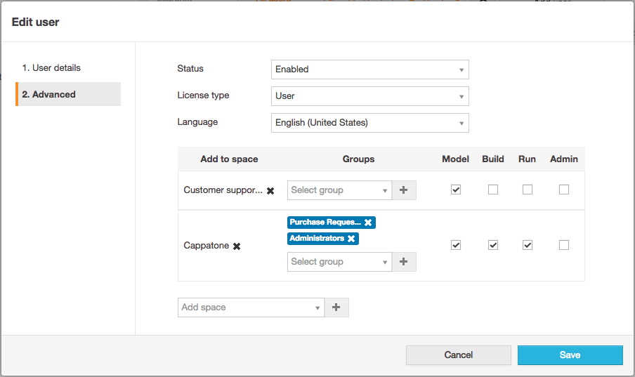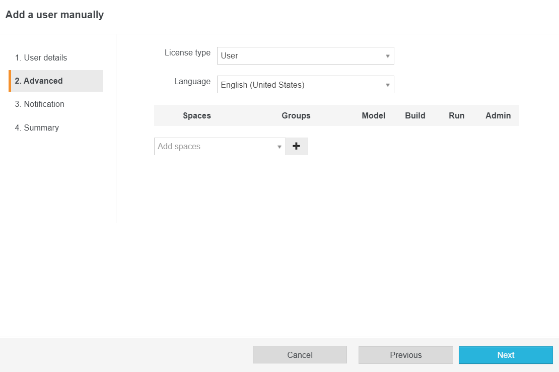 - Optional: Choose the space you want to add the user to (You can add a user to multiple Spaces).