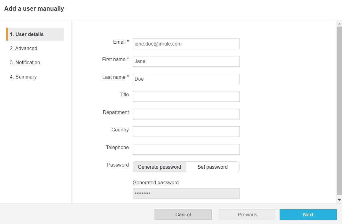If you choose to generate the password, you must let Process Automation send an automatic notification to the added user with the generated password.