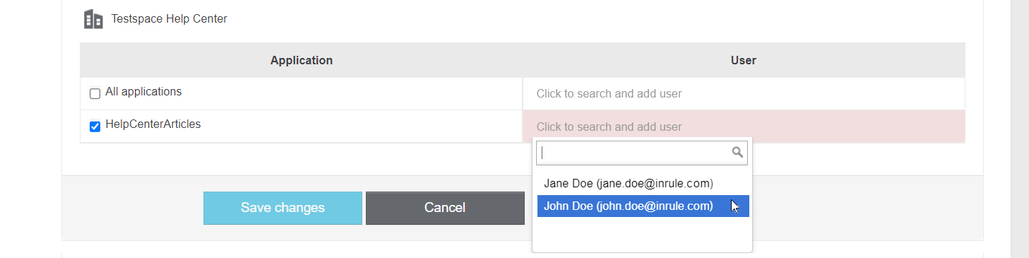 - You will see all your pages listed at the bottom of your page. In the Application field for each space, you can choose to mark All applications in a space or mark desired ones individually. Add the substitute performer in the User field by entering the email address of an existing performer.