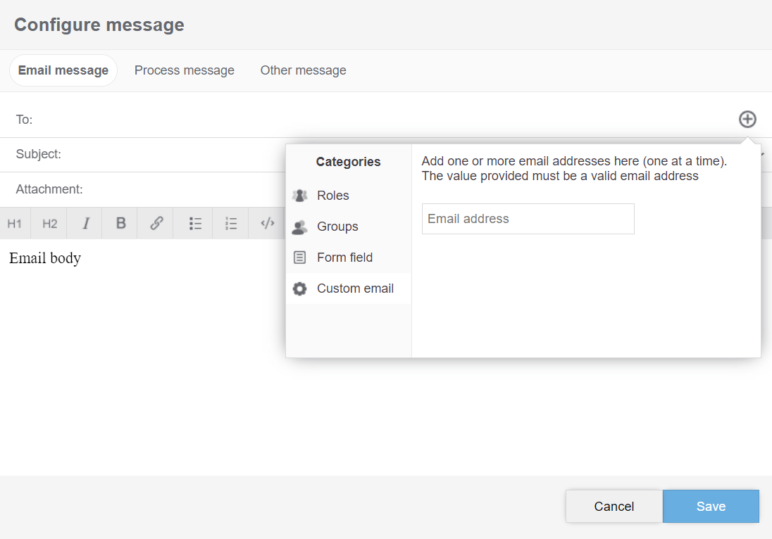 If you or other users in your organization are not receiving configured emails from your processes it could be due to a problem within the configuration. Use the checklist below to try and identify and solve the problem.